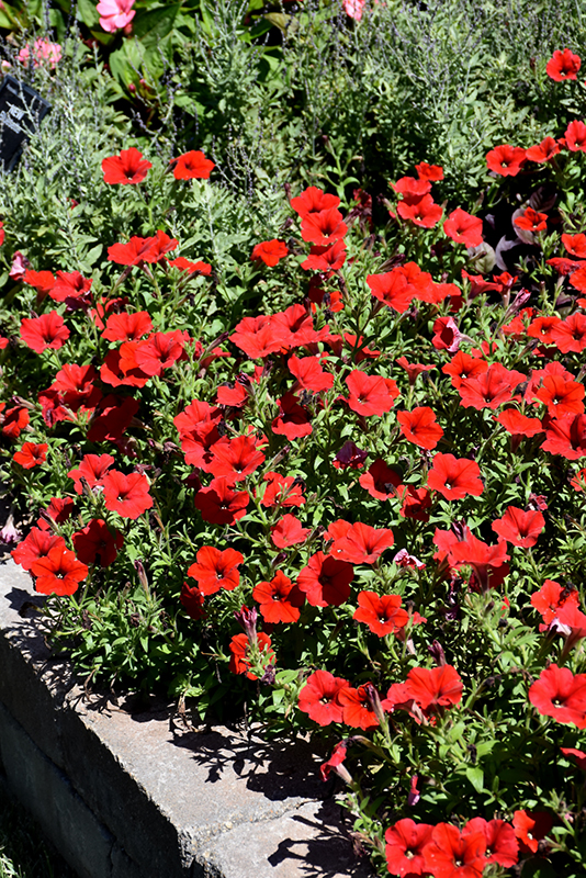 Easy Wave® Red Petunia is a fine choice for the garden, but it is also a good selection for planting in outdoor containers and hanging baskets. Because of its trailing habit of growth, it is ideally suited for use as a 'spiller' in the 'spiller-thriller-filler' container combination; plant it near the edges where it can spill gracefully over the pot. Note that when growing plants in outdoor containers and baskets, they may require more frequent waterings than they would in the yard or garden.