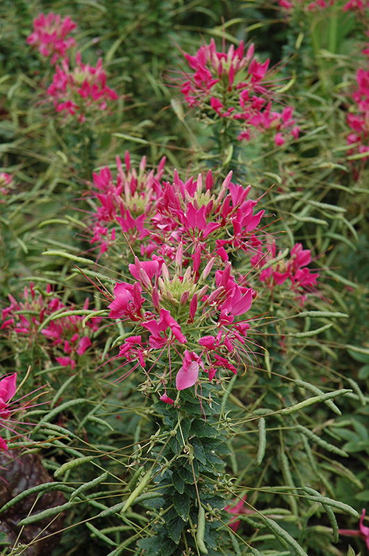 Sparkler™ Rose Spiderflower features showy spikes of rose spider-like flowers rising above the foliage from early summer to mid fall. Its pointy leaves remain dark green in color throughout the season.
