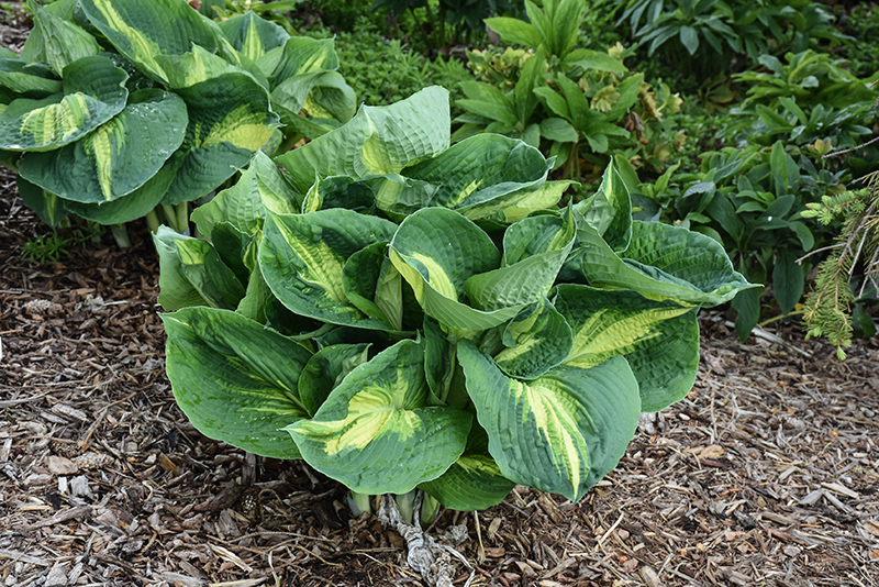 Shadowland® Hudson Bay Hosta will grow to be about 24 inches tall at maturity, with a spread of 24 inches. When grown in masses or used as a bedding plant, individual plants should be spaced approximately 20 inches apart. Its foliage tends to remain dense right to the ground, not requiring facer plants in front. It grows at a slow rate, and under ideal conditions can be expected to live for approximately 10 years. As an herbaceous perennial, this plant will usually die back to the crown each winter, and will regrow from the base each spring. Be careful not to disturb the crown in late winter when it may not be readily seen!