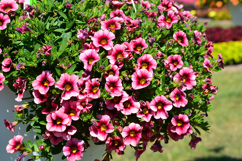 Hula Hot Pink Calibrachoa is a fine choice for the garden, but it is also a good selection for planting in outdoor containers and hanging baskets. Because of its trailing habit of growth, it is ideally suited for use as a 'spiller' in the 'spiller-thriller-filler' container combination; plant it near the edges where it can spill gracefully over the pot. Note that when growing plants in outdoor containers and baskets, they may require more frequent waterings than they would in the yard or garden.