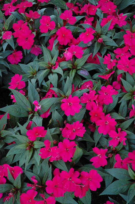 SunPatiens® Compact Royal Magenta New Guinea Impatiens will grow to be about 24 inches tall at maturity, with a spread of 24 inches. When grown in masses or used as a bedding plant, individual plants should be spaced approximately 20 inches apart. Its foliage tends to remain dense right to the ground, not requiring facer plants in front. This fast-growing annual will normally live for one full growing season, needing replacement the following year.