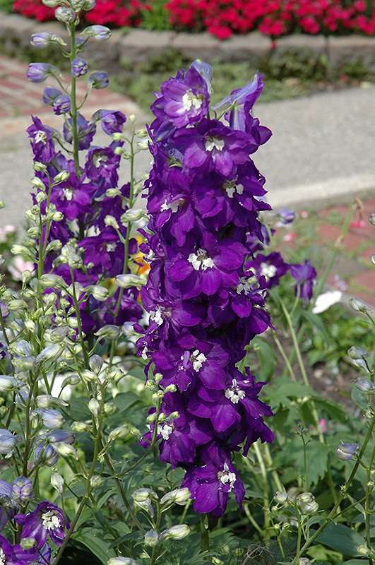 Purple Passion Larkspur is a fine choice for the garden, but it is also a good selection for planting in outdoor pots and containers. With its upright habit of growth, it is best suited for use as a 'thriller' in the 'spiller-thriller-filler' container combination; plant it near the center of the pot, surrounded by smaller plants and those that spill over the edges. It is even sizeable enough that it can be grown alone in a suitable container. Note that when growing plants in outdoor containers and baskets, they may require more frequent waterings than they would in the yard or garden.