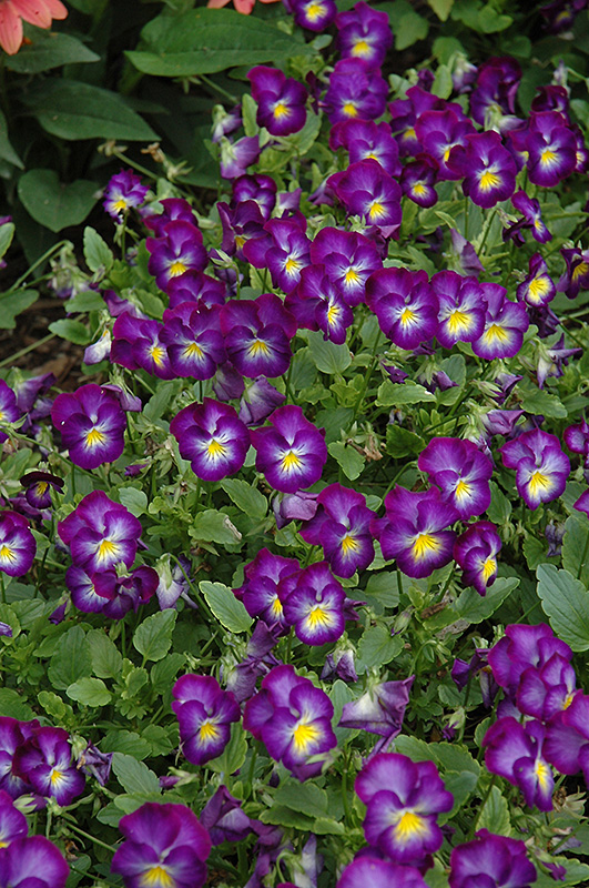 Halo Violet Pansy has masses of beautiful violet flowers with white overtones and yellow eyes at the ends of the stems from early spring to late fall, which are most effective when planted in groupings. Its crinkled round leaves remain green in color throughout the season.