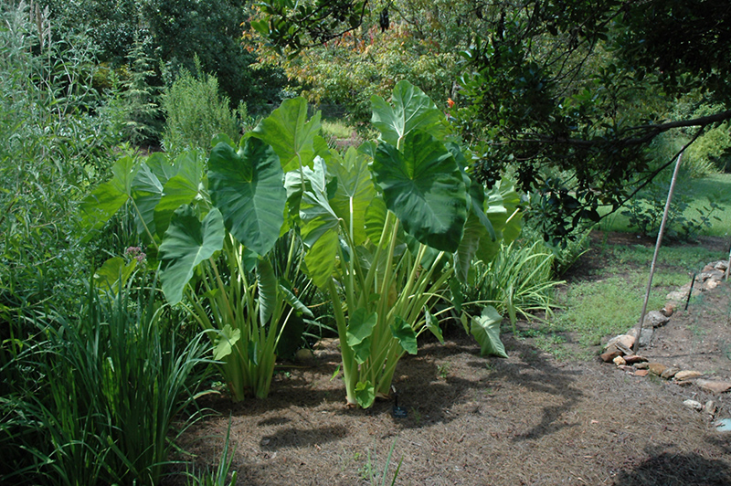 A massive cultivar producing huge blue-green leaves that are a sight to behold; a tremendous garden or pondside accent for a tropical look; in colder climates it can be removed after first frost and stored in a cool dry place until spring