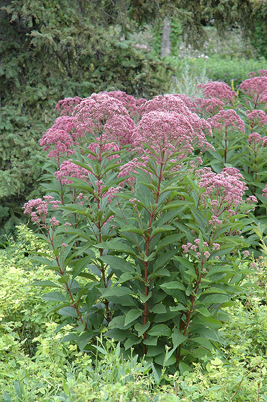 Joe Pye Weed will grow to be about 6 feet tall at maturity, with a spread of 4 feet. When grown in masses or used as a bedding plant, individual plants should be spaced approximately 3 feet apart. It tends to be leggy, with a typical clearance of 1 foot from the ground, and should be underplanted with lower-growing perennials. It grows at a medium rate, and under ideal conditions can be expected to live for approximately 15 years. As an herbaceous perennial, this plant will usually die back to the crown each winter, and will regrow from the base each spring. Be careful not to disturb the crown in late winter when it may not be readily seen!
