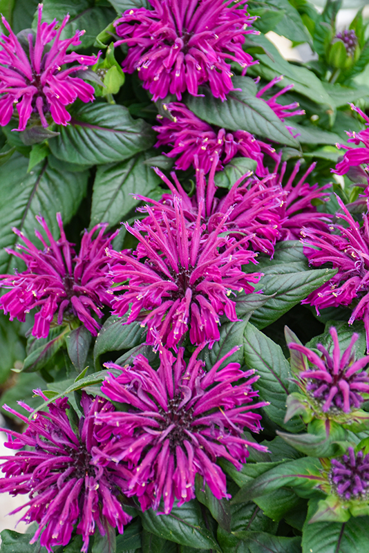 Rockin' Raspberry Beebalm has masses of beautiful clusters of fragrant deep purple pincushion flowers with fuchsia overtones at the ends of the stems from mid to late summer, which are most effective when planted in groupings. The flowers are excellent for cutting. Its fragrant pointy leaves remain dark green in color throughout the season.