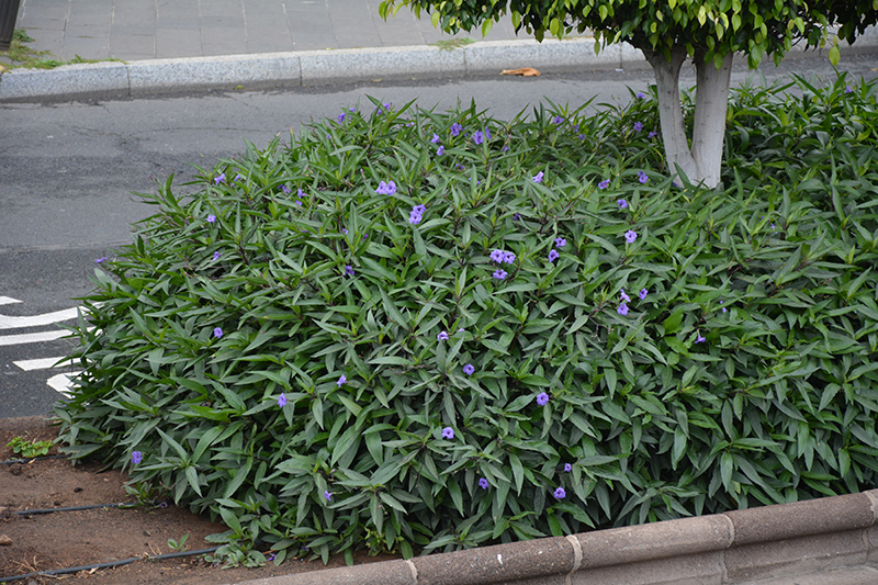Mexican Petunia will grow to be about 3 feet tall at maturity, with a spread of 24 inches. When grown in masses or used as a bedding plant, individual plants should be spaced approximately 18 inches apart. Although it's not a true annual, this fast-growing plant can be expected to behave as an annual in our climate if left outdoors over the winter, usually needing replacement the following year. As such, gardeners should take into consideration that it will perform differently than it would in its native habitat.