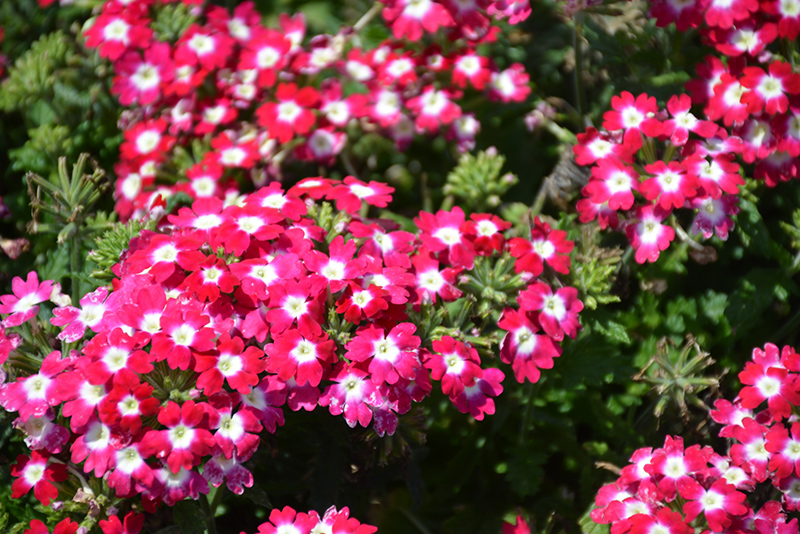 Empress™ Flair Cherry Charme Verbena features showy clusters of cherry red star-shaped flowers with white centers at the ends of the stems from late spring to mid fall. The flowers are excellent for cutting. Its tiny tomentose narrow leaves remain green in color throughout the season.