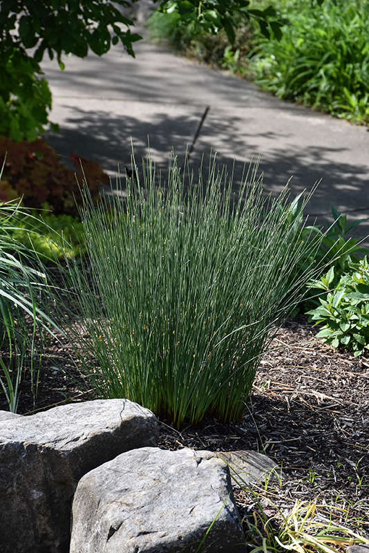 Blue Mohawk® Soft Rush will grow to be about 3 feet tall at maturity, with a spread of 12 inches. When grown in masses or used as a bedding plant, individual plants should be spaced approximately 12 inches apart. Its foliage tends to remain dense right to the ground, not requiring facer plants in front. It grows at a fast rate, and under ideal conditions can be expected to live for approximately 8 years. As an herbaceous perennial, this plant will usually die back to the crown each winter, and will regrow from the base each spring. Be careful not to disturb the crown in late winter when it may not be readily seen!
