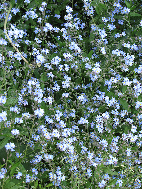 Forget-Me-Not will grow to be about 12 inches tall at maturity, with a spread of 12 inches. When grown in masses or used as a bedding plant, individual plants should be spaced approximately 10 inches apart. It grows at a fast rate, and tends to be biennial, meaning that it puts on vegetative growth the first year, flowers the second, and then dies. However, this species tends to self-seed and will thereby endure for years in the garden if allowed. As this plant tends to go dormant in summer, it is best interplanted with late-season bloomers to hide the dying foliage.