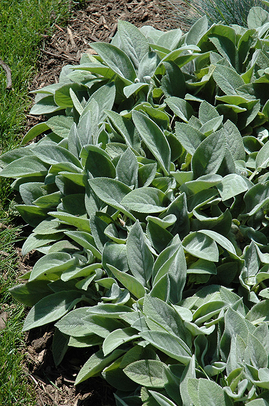 Giant Lamb's Ears will grow to be about 18 inches tall at maturity extending to 30 inches tall with the flowers, with a spread of 24 inches. When grown in masses or used as a bedding plant, individual plants should be spaced approximately 20 inches apart. Its foliage tends to remain dense right to the ground, not requiring facer plants in front. It grows at a fast rate, and under ideal conditions can be expected to live for approximately 10 years. As an herbaceous perennial, this plant will usually die back to the crown each winter, and will regrow from the base each spring. Be careful not to disturb the crown in late winter when it may not be readily seen!