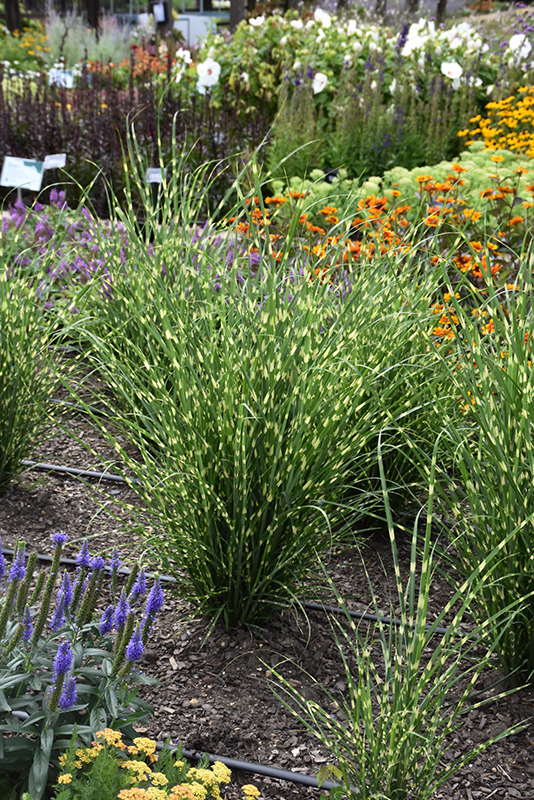 This variety has tall banded and variegated green foliage, and an upright columnar habit that is quite symmetrical; broad plumes rise above in fall and produce silvery-white seeds; perfect as a border backdrop, hedge, or screen; great winter interest
