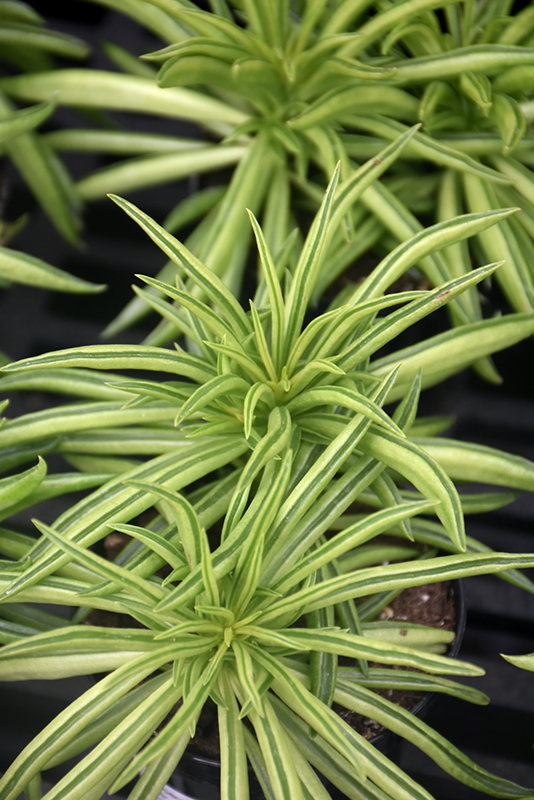 This stunning plant produces upright stems of narrow chartreuse to light green foliage striped with a deeper green, resembling small beans; easy to grow and low maintenance; prefers consistently moist soil