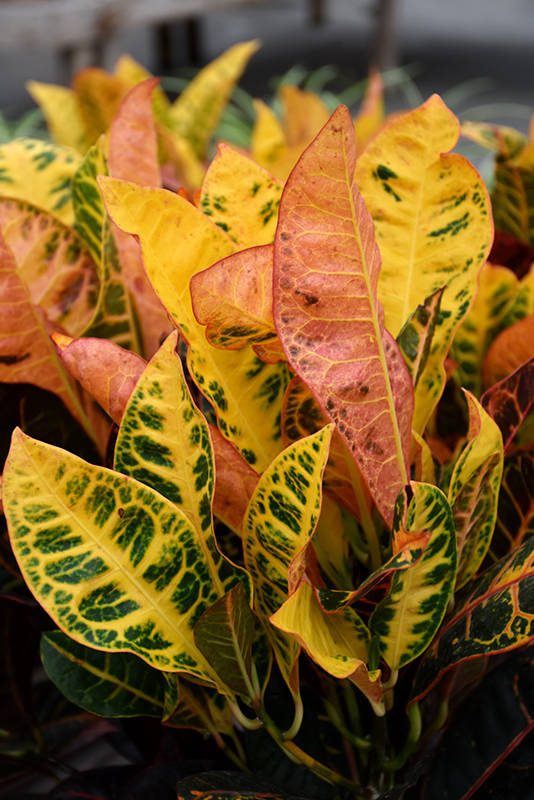 This woody perennial is an excellent houseplant in colder climates, noted for its striking foliage but, is a lovely outdoor accent in warmer areas; glossy, lanceolate leaves in a bright range of colors, yellow, pink, orange, red, bronze, green, and purple
