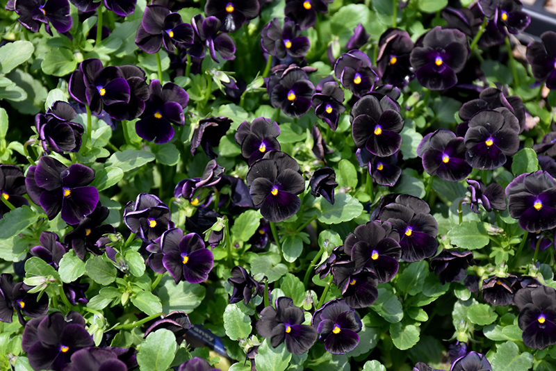 Sorbet® Black Delight Pansy has masses of beautiful black flowers with indigo overtones, yellow eyes and violet streaks at the ends of the stems from early spring to late summer, which are most effective when planted in groupings. Its serrated round leaves remain dark green in color throughout the season.